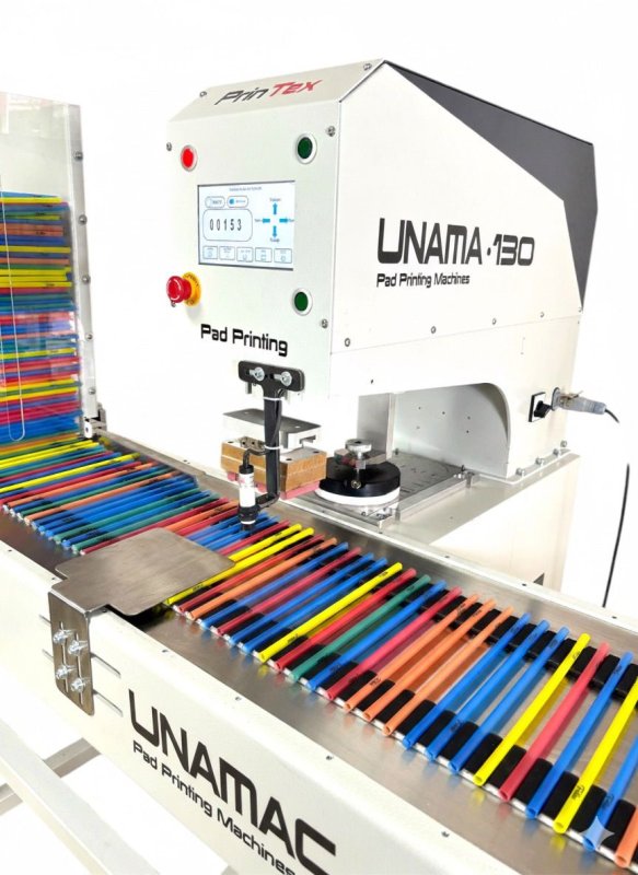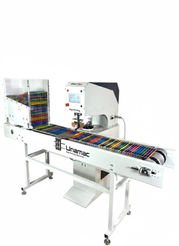 UNMC/P10A, entegre konveyör sistemi ile pipetlerin otomatik beslenmesini ve baskı sonrası çıkışını sağlar. Konveyör sistemi istenildiğinde makineden sökülebilir, böylece makine predeli (manuel beslemeli) baskı makinesi olarak da farklı ürünlerde kullanılabilir.